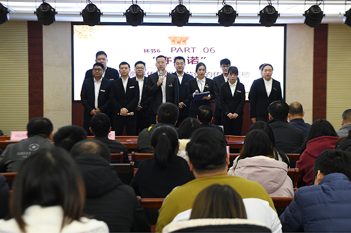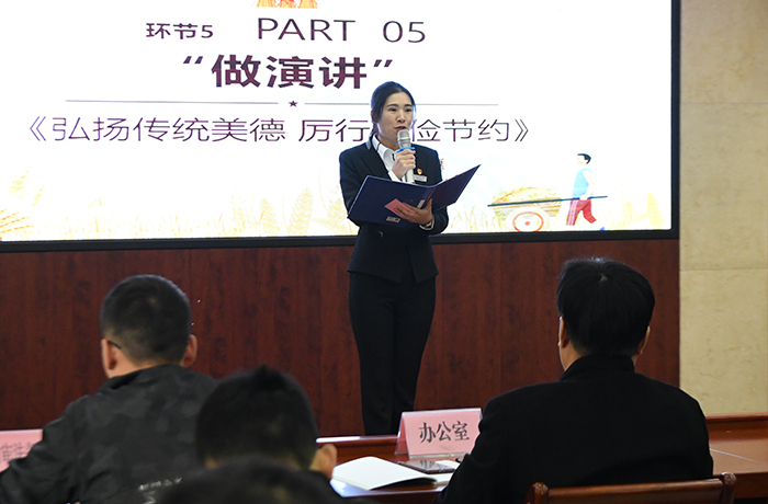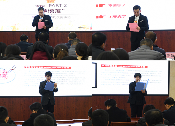 活動開始,首先由商山華庭裝飾公司組織開展“弘揚傳統(tǒng)美德 厲行勤儉節(jié)約”2020年第二期道德講堂。道德講堂共分為“唱歌曲、學模范、誦經(jīng)典、看短片、做演講、許承諾”六個環(huán)節(jié)。合唱歌曲《勤儉是咱們的傳家寶》唱出了中華民族自古以來的勤儉好傳統(tǒng),“許承諾”環(huán)節(jié),員工們齊聲許下“弘揚傳統(tǒng)美德,厲行勤儉節(jié)約,堅決制止浪費,切實培養(yǎng)勤儉節(jié)約優(yōu)良傳統(tǒng)”的美好承諾。