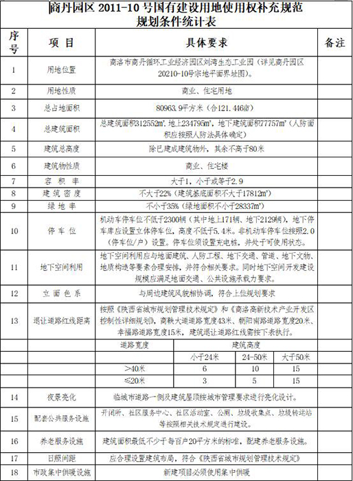 3.商丹園區(qū)2011-10號(hào)國(guó)有建設(shè)用地使用權(quán)補(bǔ)充規(guī)范規(guī)劃條件統(tǒng)計(jì)表