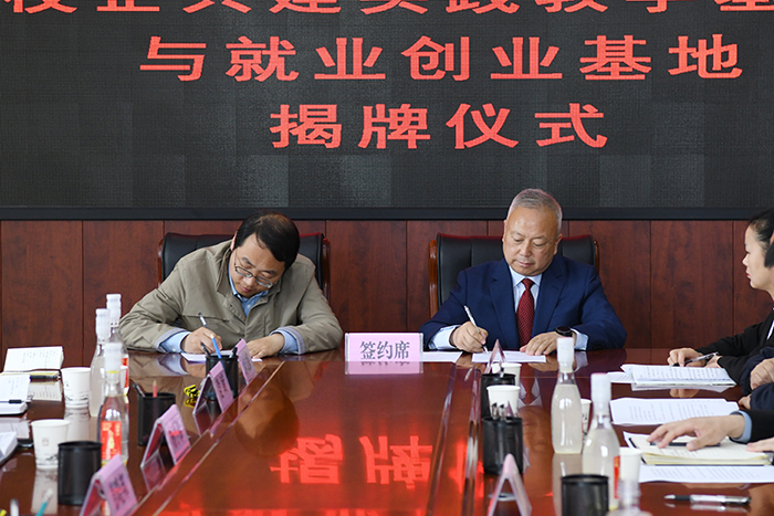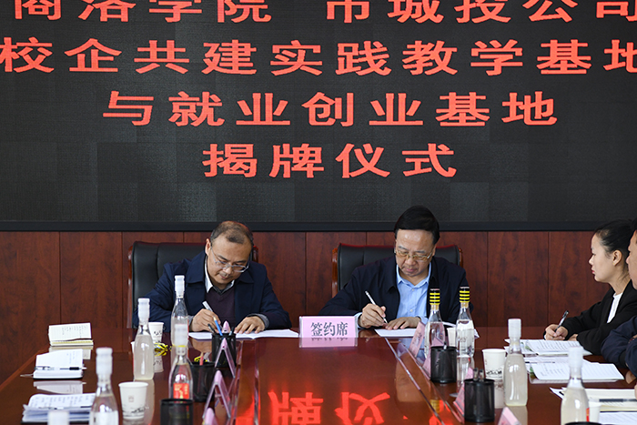 商洛學(xué)院建工學(xué)院院長彭曉邦和公司黨委副書記、總經(jīng)理王昱智簽訂《商洛學(xué)院實踐教學(xué)基地協(xié)議》;商洛學(xué)院建工學(xué)院黨委書記楊小鋒和公司黨委書記、董事長葉春祥簽訂《商洛學(xué)院 商洛市城市建設(shè)投資開發(fā)有限公司共建大學(xué)生就業(yè)創(chuàng)業(yè)基地協(xié)議》,商洛學(xué)院建工學(xué)院黨委書記楊小鋒、院長彭曉邦和公司領(lǐng)導(dǎo)葉春祥、王昱智、盧濤共同為“實踐教學(xué)基地”和“就業(yè)創(chuàng)業(yè)基地”進(jìn)行現(xiàn)場揭牌。