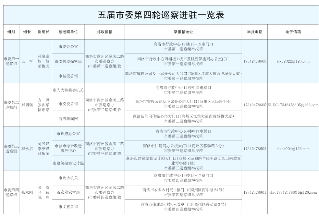 據(jù)了解,市委4個(gè)巡察組將在被巡察單位工作50天左右,巡察期間設(shè)立專門舉報(bào)電話、舉報(bào)信箱,主要受理反映本輪12個(gè)被巡察單位領(lǐng)導(dǎo)班子及其成員、本單位其他市管領(lǐng)導(dǎo)干部、重點(diǎn)崗位黨員干部和下一級單位主要負(fù)責(zé)人的有關(guān)問題,重點(diǎn)是違反政治紀(jì)律、組織紀(jì)律、廉潔紀(jì)律、群眾紀(jì)律、工作紀(jì)律、生活紀(jì)律方面的舉報(bào)和反映。各巡察組受理來電時(shí)間為工作日8:00—18:00,受理信訪時(shí)間截止到2023年11月25日。