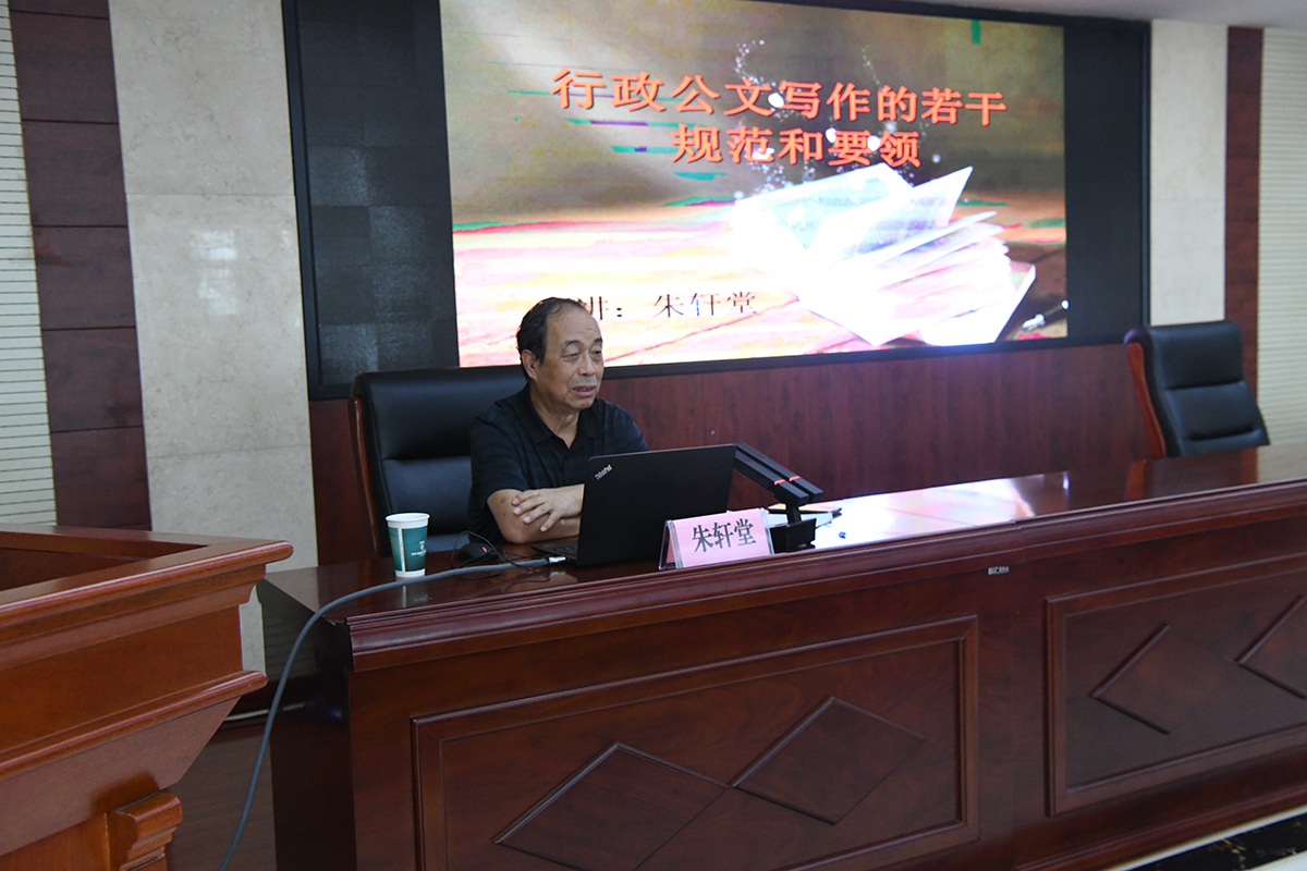 培訓會上,朱軒堂同志以簡潔的語言風格、扎實的理論知識、豐富的具體案例,圍繞行政公文的基本常識、行政公文寫作的基本要領、堅定文化自信在“在兩個結合”中提高公文寫作能力三個方面進行了深入闡述,并結合自身多年的寫作經(jīng)驗和工作感觸,對公文寫作的體例格式、謀篇布局、內容甄選、出彩出新、規(guī)避寫作誤區(qū)等核心知識進行解剖式教學,為全體與會人員呈現(xiàn)了一堂兼具指導性與針對性的精彩講座。